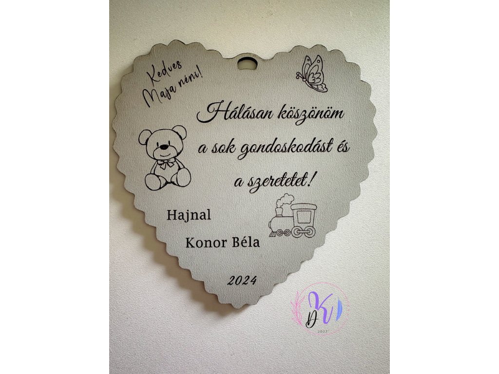Választott nevet szöveget és jeleket, illetve fa színét a megrendelés végén a megjegyzésbe írja bele.