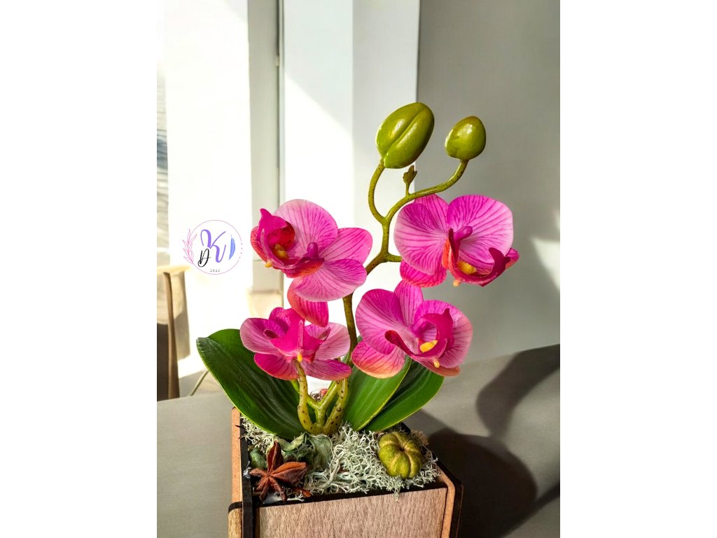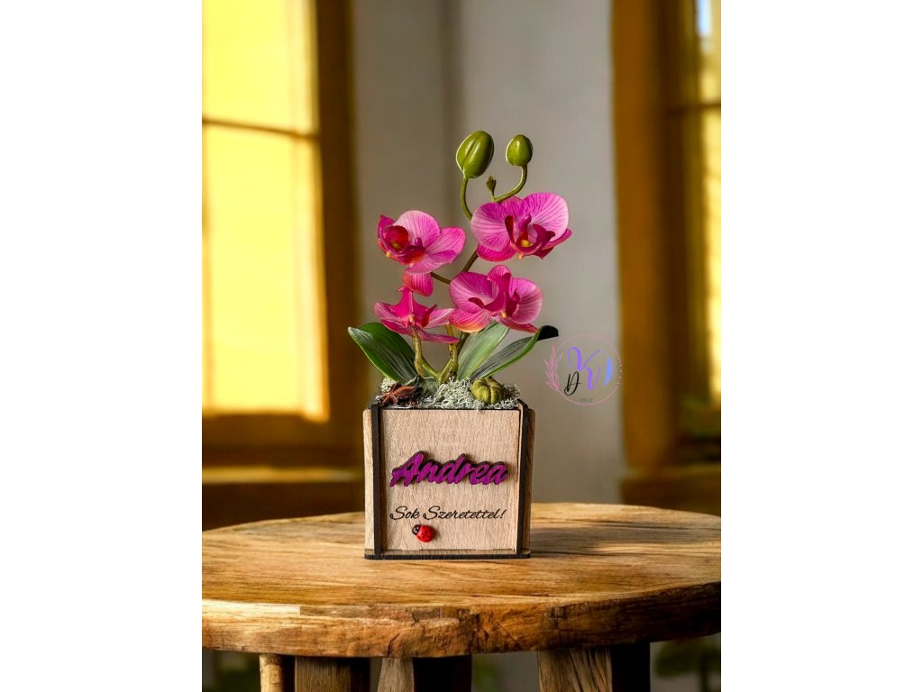 DEKOR ORCHIDEA FA KASPÓBAN KATICÁVAL LILA
