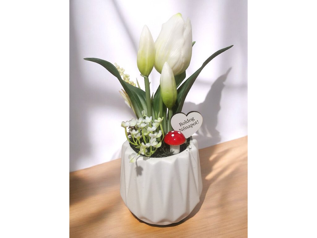 DEKOR TULIPÁN KASPÓBAN AJÁNDÉK TÁBLÁCSKÁVAL FEHÉR