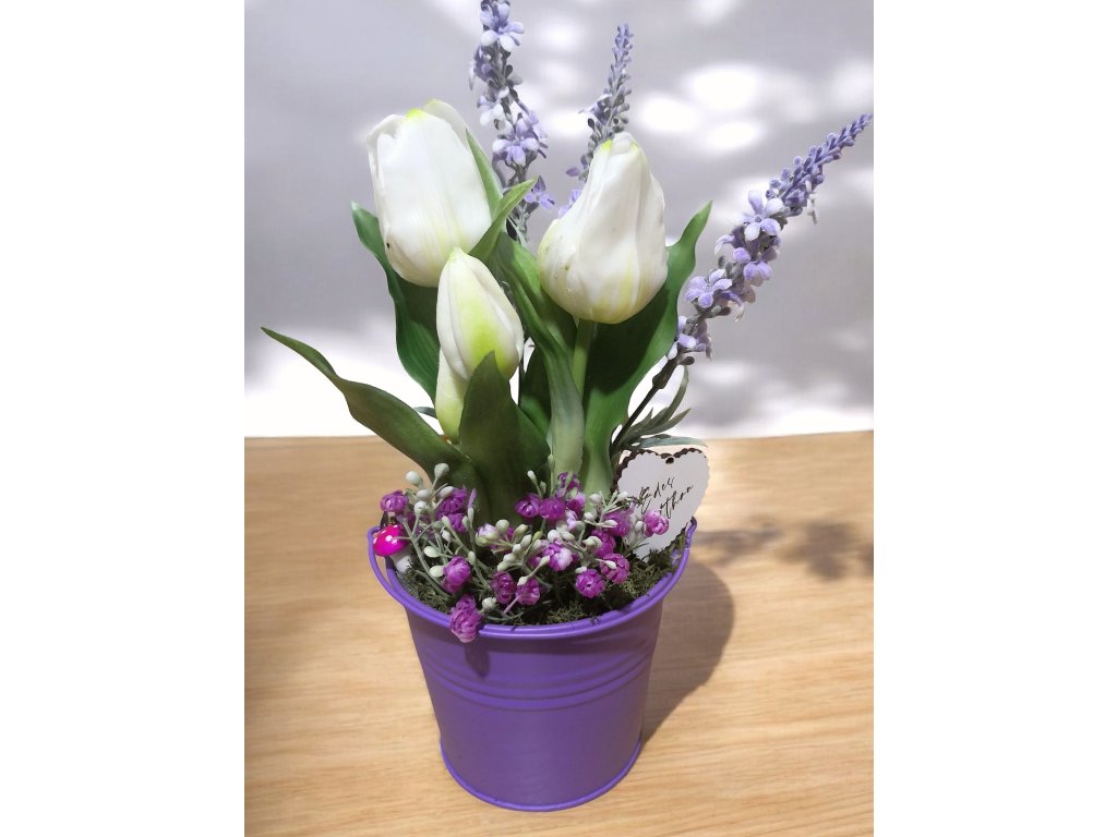 DEKOR TULIPÁN VÖDÖRBEN AJÁNDÉK TÁBLÁCSKÁVAL FEHÉR