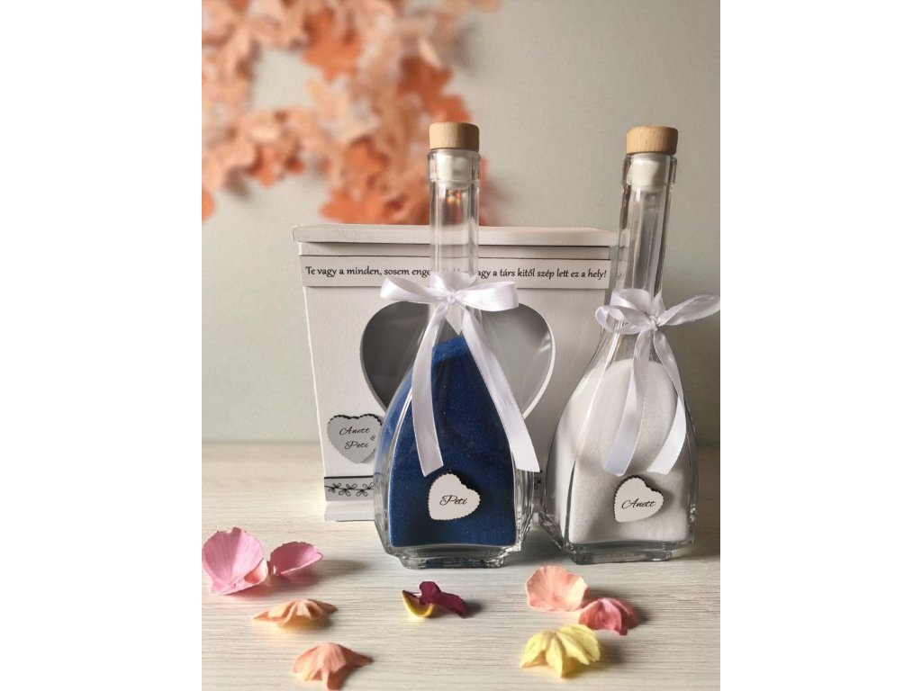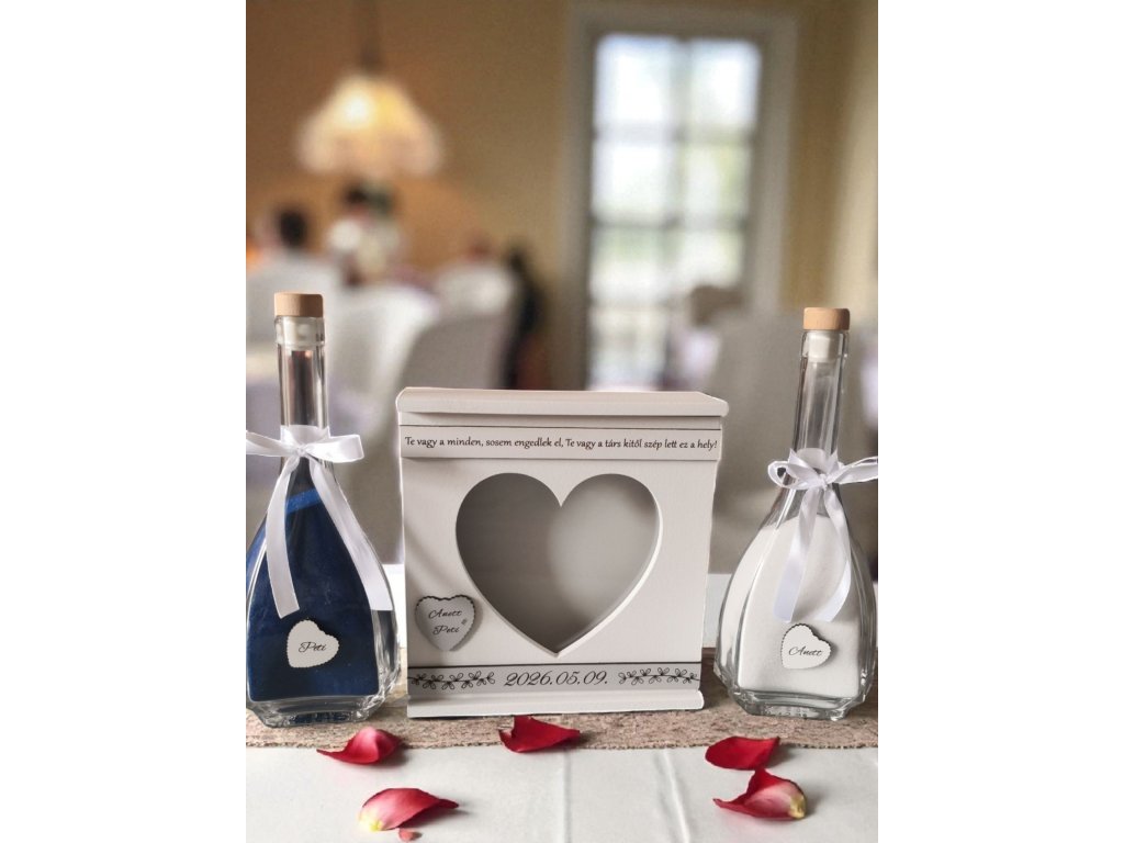 - Doboz gravírozott nevekkel és dátummal díszítve.