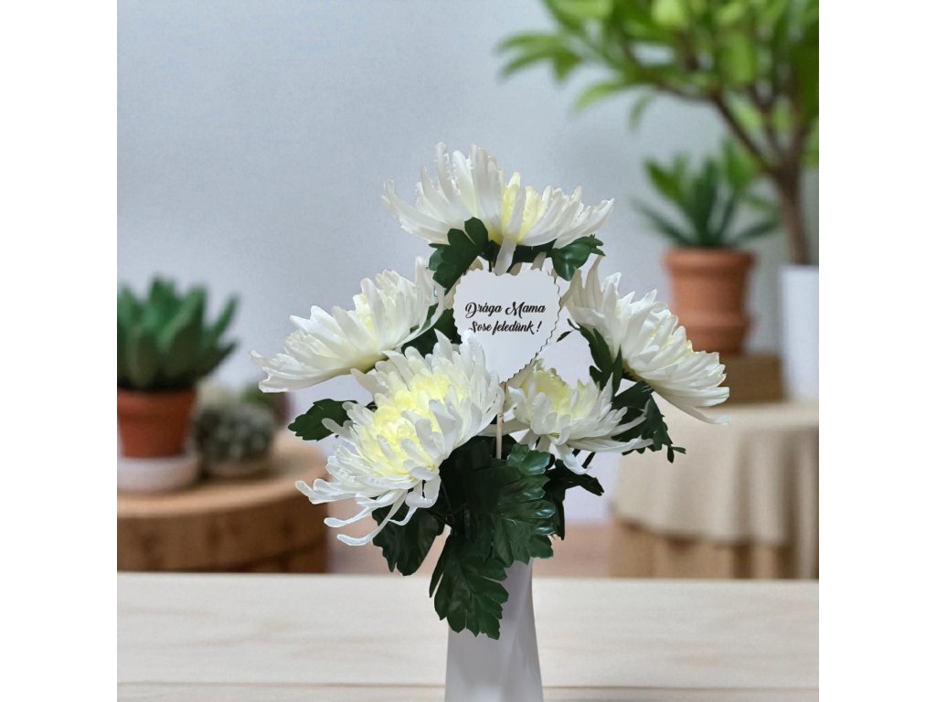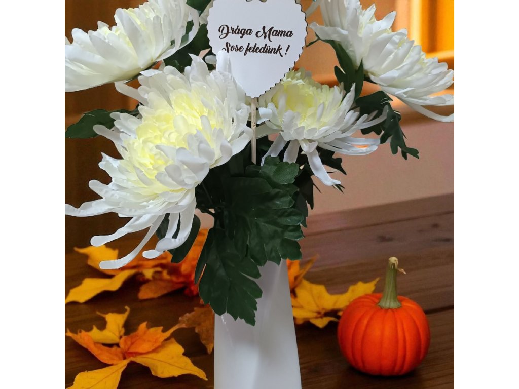 KRIZANTÉN CSOKOR FEHÉR TÁBLÁCSKÁVAL